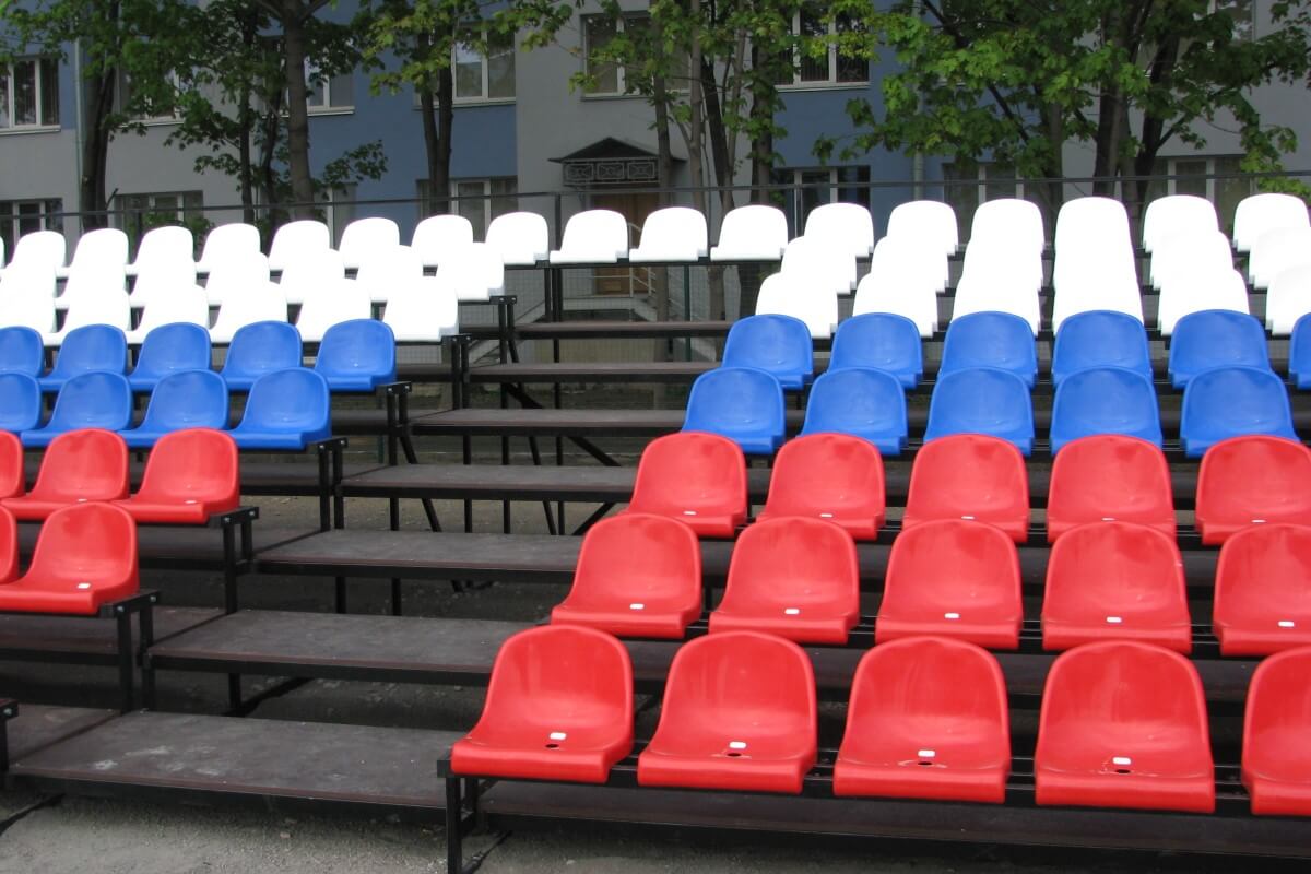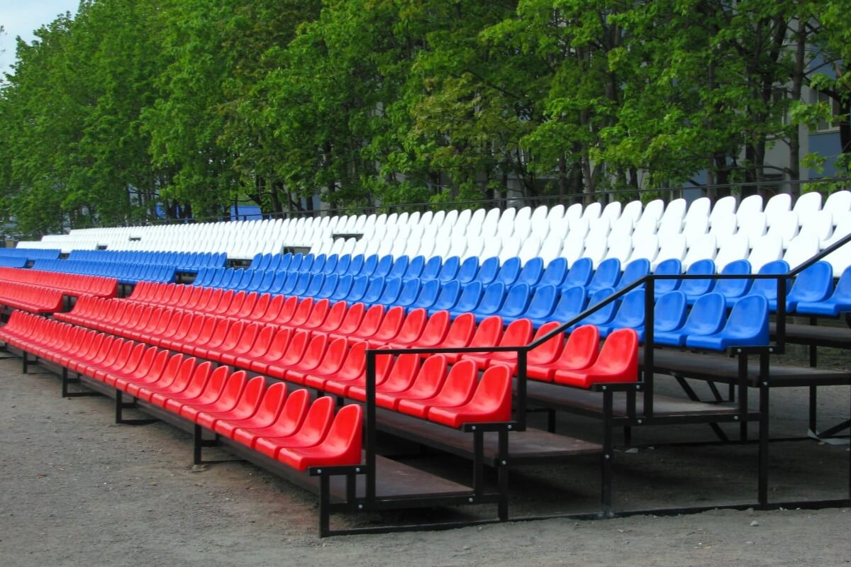 Главная страницаВ компании «Уличный турник» Вы можете оформить заказ на трибуны для стадионов любого вида и сложности. Мы изготавливаем трибуны из металла как с пластиковыми сидениями, так и с лавками. Пластмассовые сидения оснащены дренажным отверстием, что позволяет эксплуатировать зрительские трибуны на улице. Помимо этого, спортивная трибуна может быть оборудована навесом, а также необходимым подъемом. Цвет, размер и комплектация конструкции определяется заказчиком.